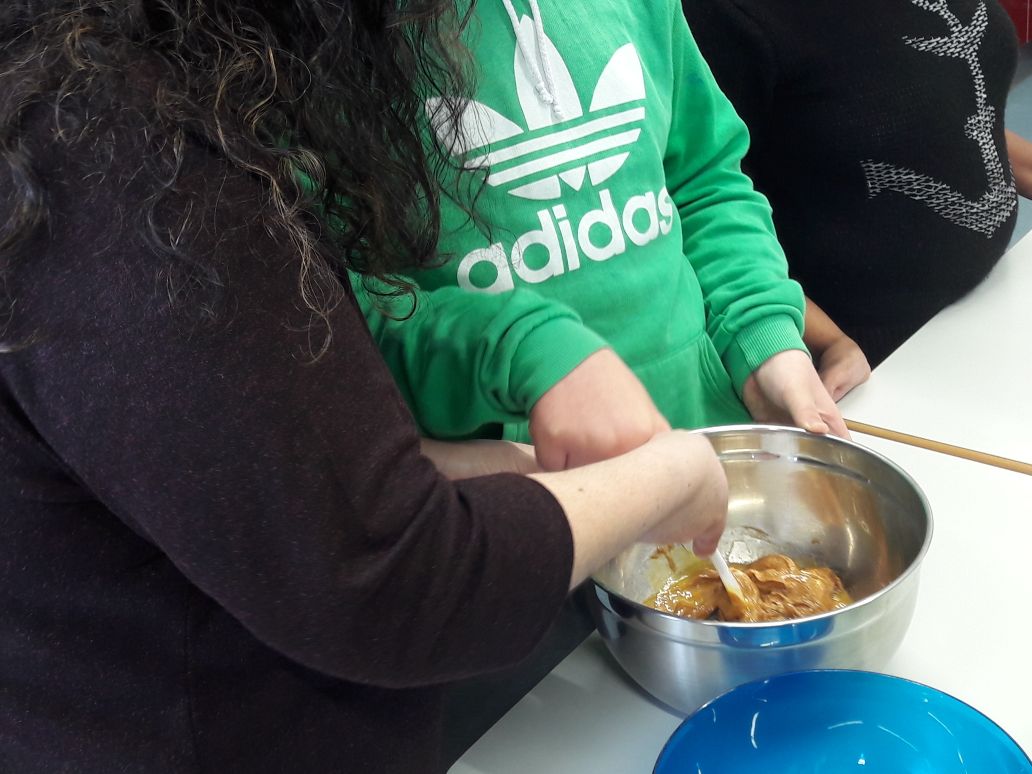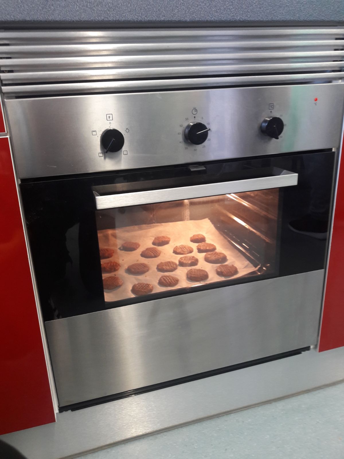 A atividade era de culinária e fizemos biscoitos de manteiga de amendoim.